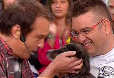 A brincadeira pode não agradar nada Sabrina Sato, embora ela já conheça bem o humor negro dos ex-colegas do Pânico na Band. É que na noite de domingo (16), na volta das férias do humorístico, Emílio Surita elegeu uma cadela como nova integrante da atração. O animal entrou no palco e se posicionou bem ao lado dos colegas.
